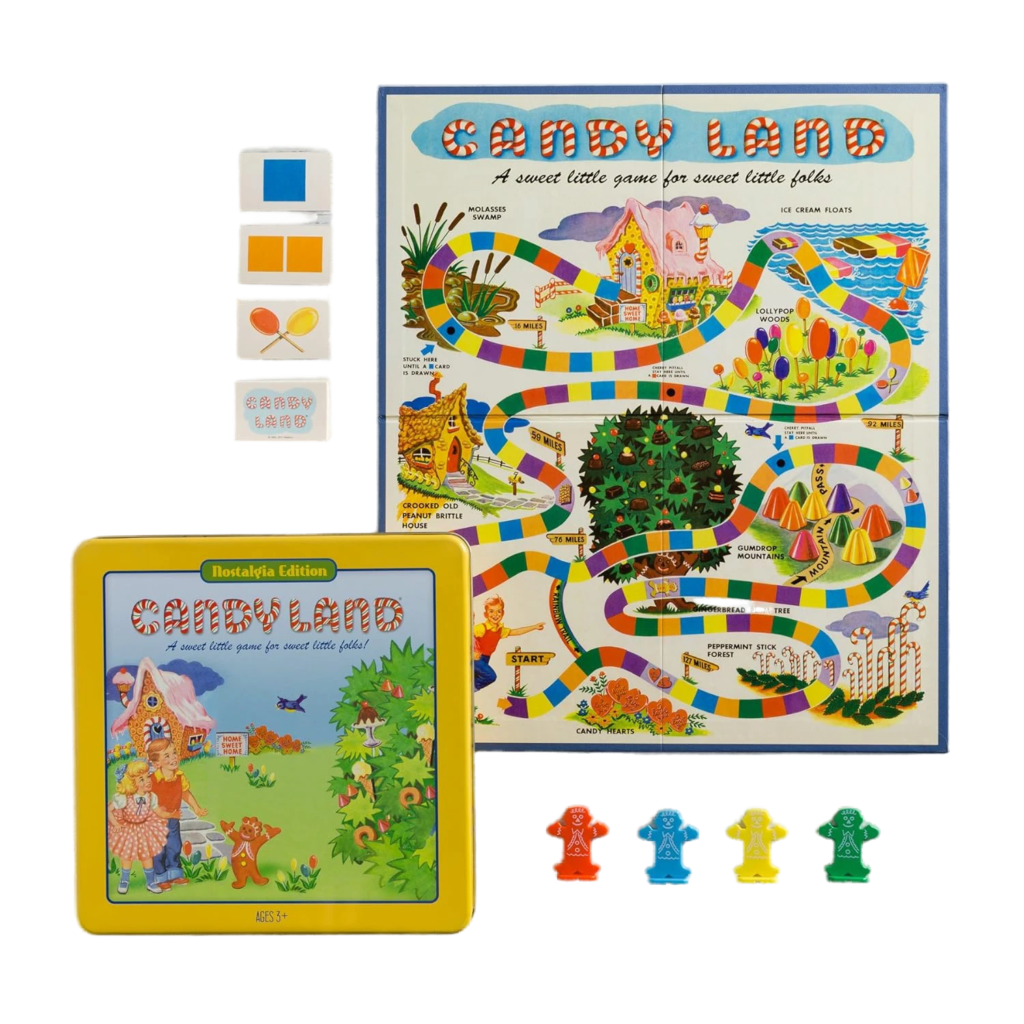 Why it endures: 🍡 Candy Land isn’t really a strategy game — it’s an experience game. It teaches children how to take turns, follow rules, and handle winning and losing gracefully. More than anything, it’s a shared imaginative journey that carries enormous nostalgic weight for adults who played it as children.