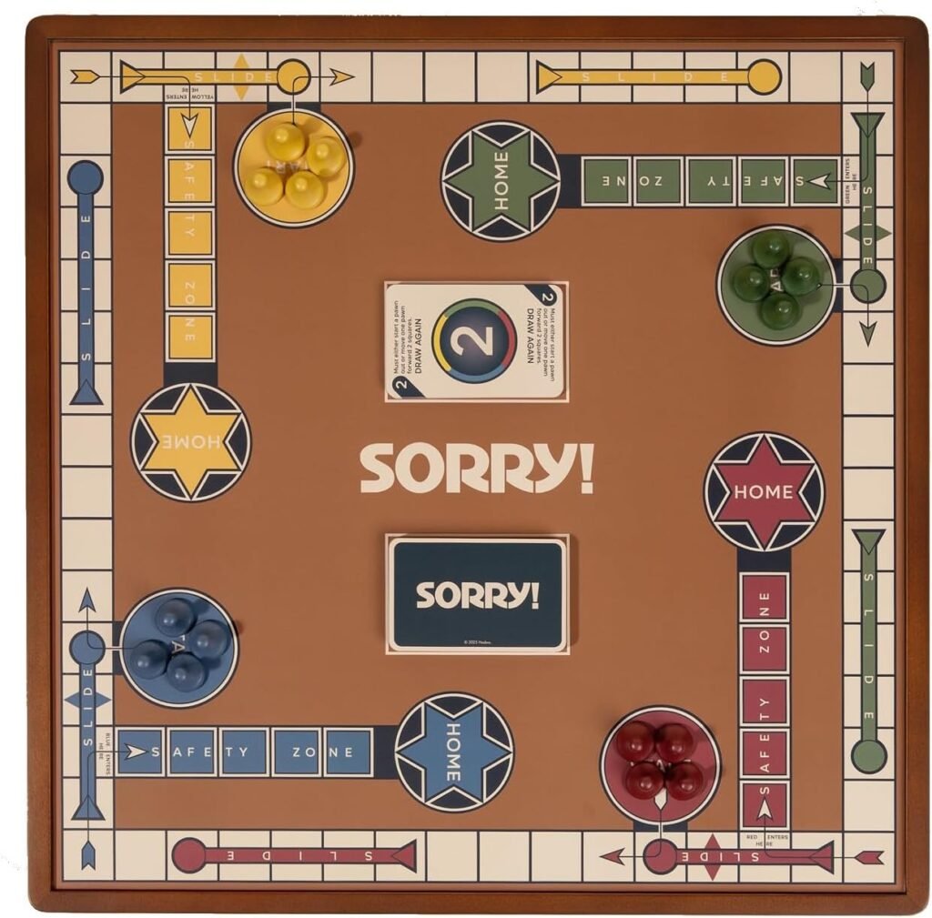 Why it endures: Sorry! has one of the best emotional hooks in board gaming: the gleeful shame of ruining someone else’s progress. It’s perfectly paced for younger players, teaches turn-taking and counting, and provides adults with just enough strategic choice to stay engaged.